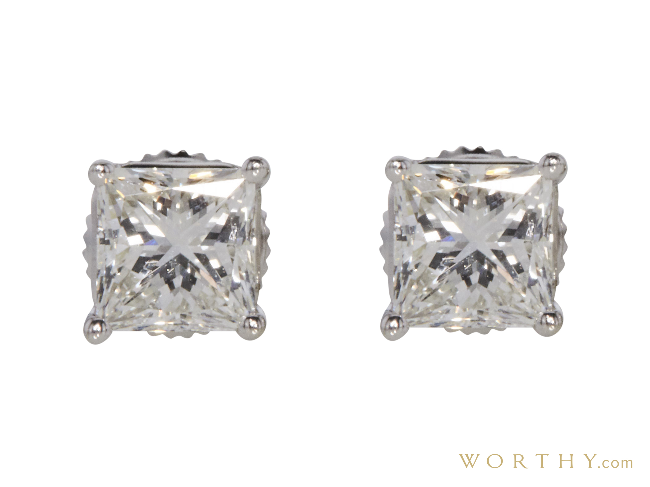 0.90 ct. Princess Cut Stud Earrings, H-I, VS1-VS2