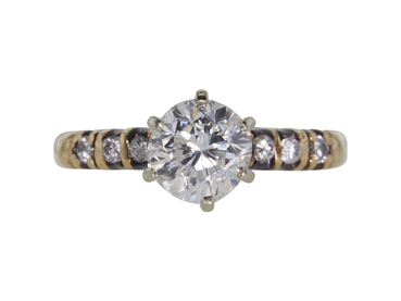14k gold custom made solitaire ring consisting of round shape, natural diamond, weighing 1.0 carats, having a H color and I1 clarity, according to GIA grading scale. The center stone measuring 6.36mm x 6.32mm x 3.93mm and carries a GIA grading report.