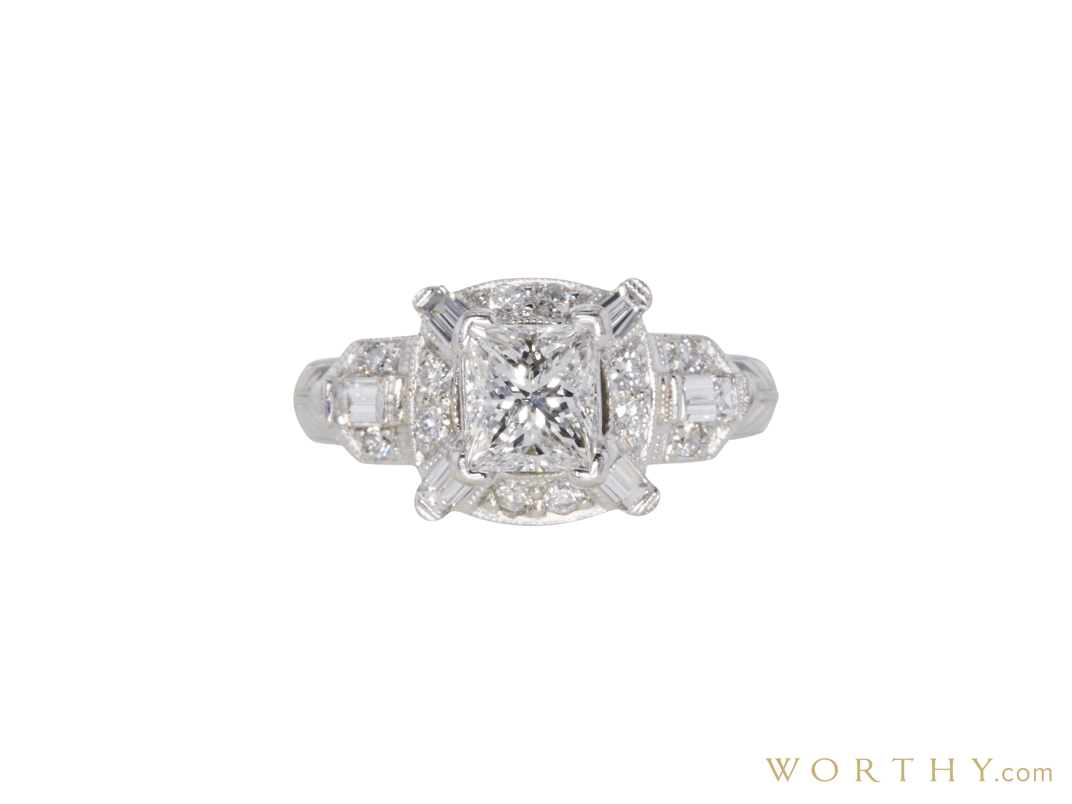 1.01 ct. Princess Cut Halo Ring, F, I1