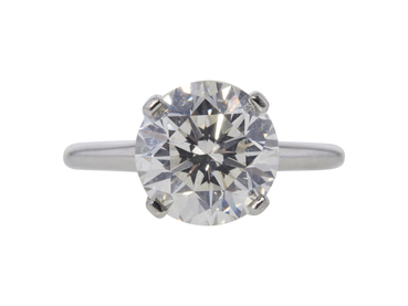 platinum custom made solitaire ring consisting of round shape, natural natural, weighing 4.21 carats, having a E color and VS2 clarity, according to GIA grading scale. The center stone measuring 10.32mm x 10.24mm x 6.57mm and carries a GIA grading report. All surrounding naturals are genuine with a total carat weight (cttw) of 0.78 carats.