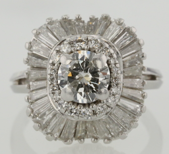 platinum custom made right hand ring consisting of european cut shape, natural diamond, weighing 1.20 - 1.26 carats, having a I-J color and VS1 clarity, according to GIA grading scale. The center stone measuring 7.0mm x 7.03mm x 3.88mm. All surrounding diamonds are genuine with a total carat weight (cttw) of 0.30 carats.