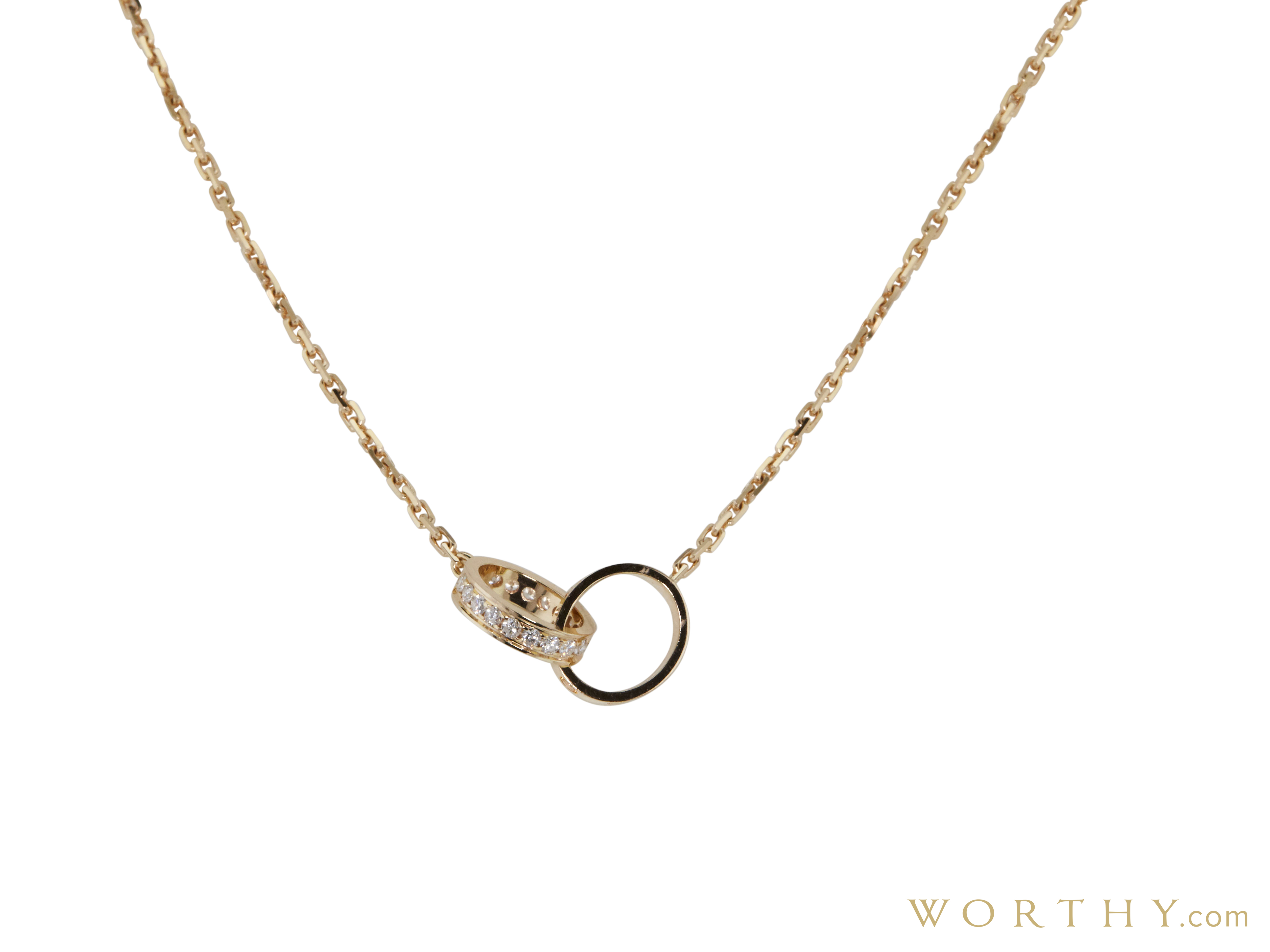 | ©CARTIER. LOVE NECKLACE,DIAMONDS:(18K (750) Rose Gold and Diamonds) Ref. B7013900. This item was graded at the Worthy Lab by GIA Graduate Gemologists. Gemological findings may vary if the same diamond is evaluated un-mounted. Grade and Carat weights are approximate ranges as permitted by setting, unless clearly specified or hallmarked. | |
