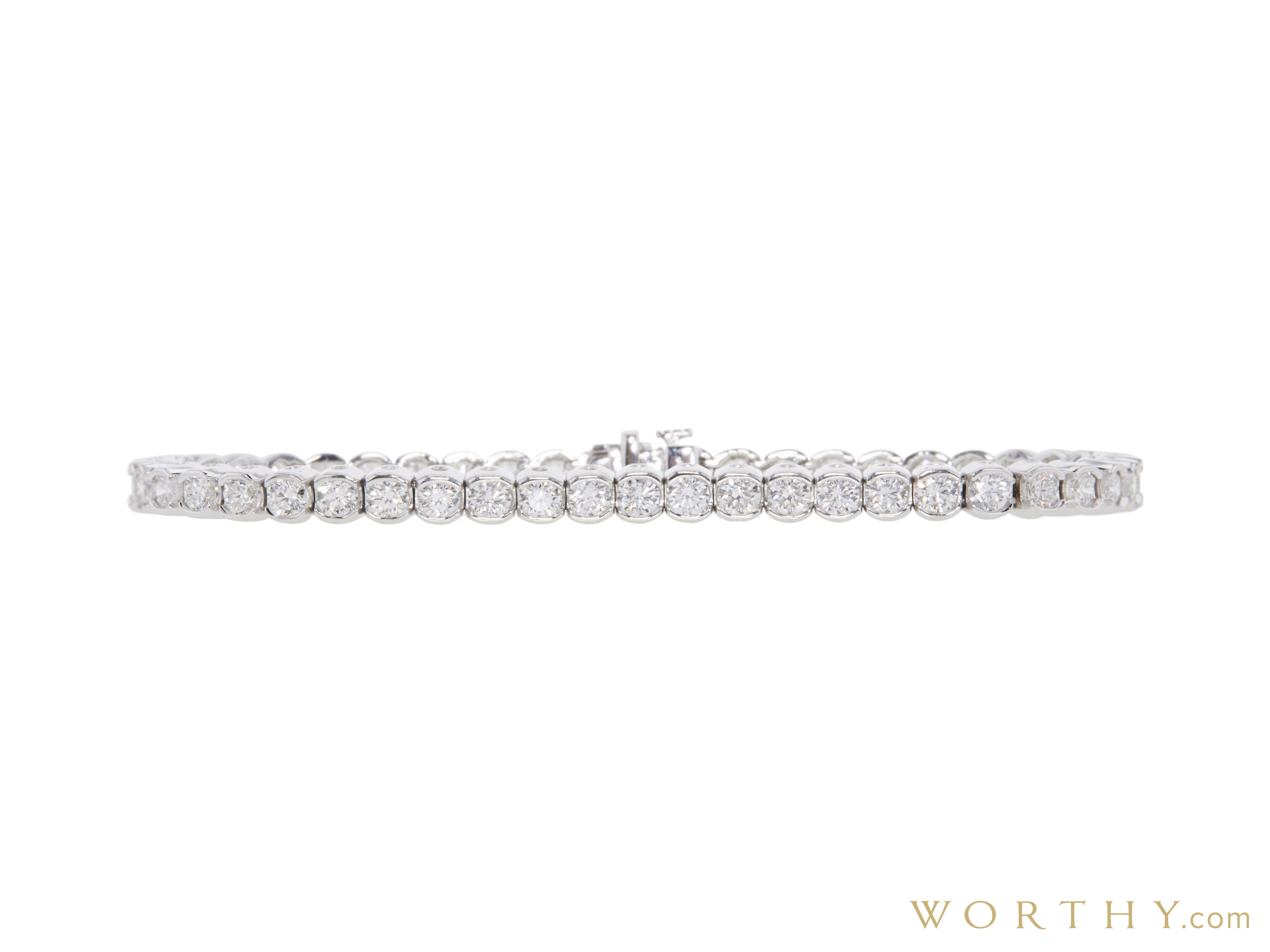 18k gold custom made tennis bracelet consisting of49Round shape, natural Diamonds, weighing 6.96 - 7.01 carats (cttw). The stones color and clarity ranging I-J and SI1-SI2 respectively, according to GIA grading scale. and carries a IGI grading report.