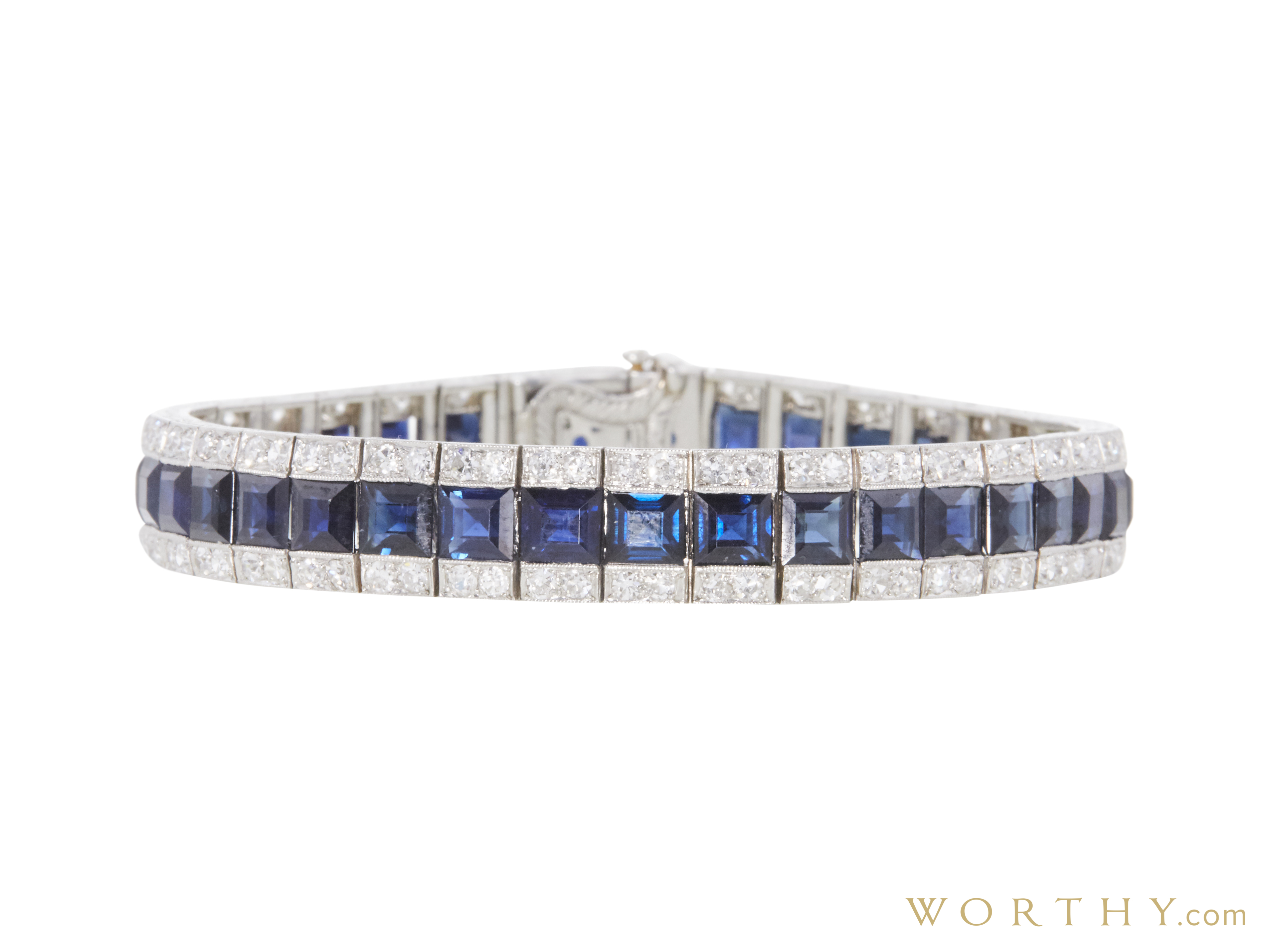 platinum custom made link bracelet consisting of37Princess shape, natural , weighing 25.83 - 25.90 carats (cttw). The stones color and clarity ranging Blue and Slightly-Moderately Included respectively, according to GIA grading scale. and carries a IGI grading report.