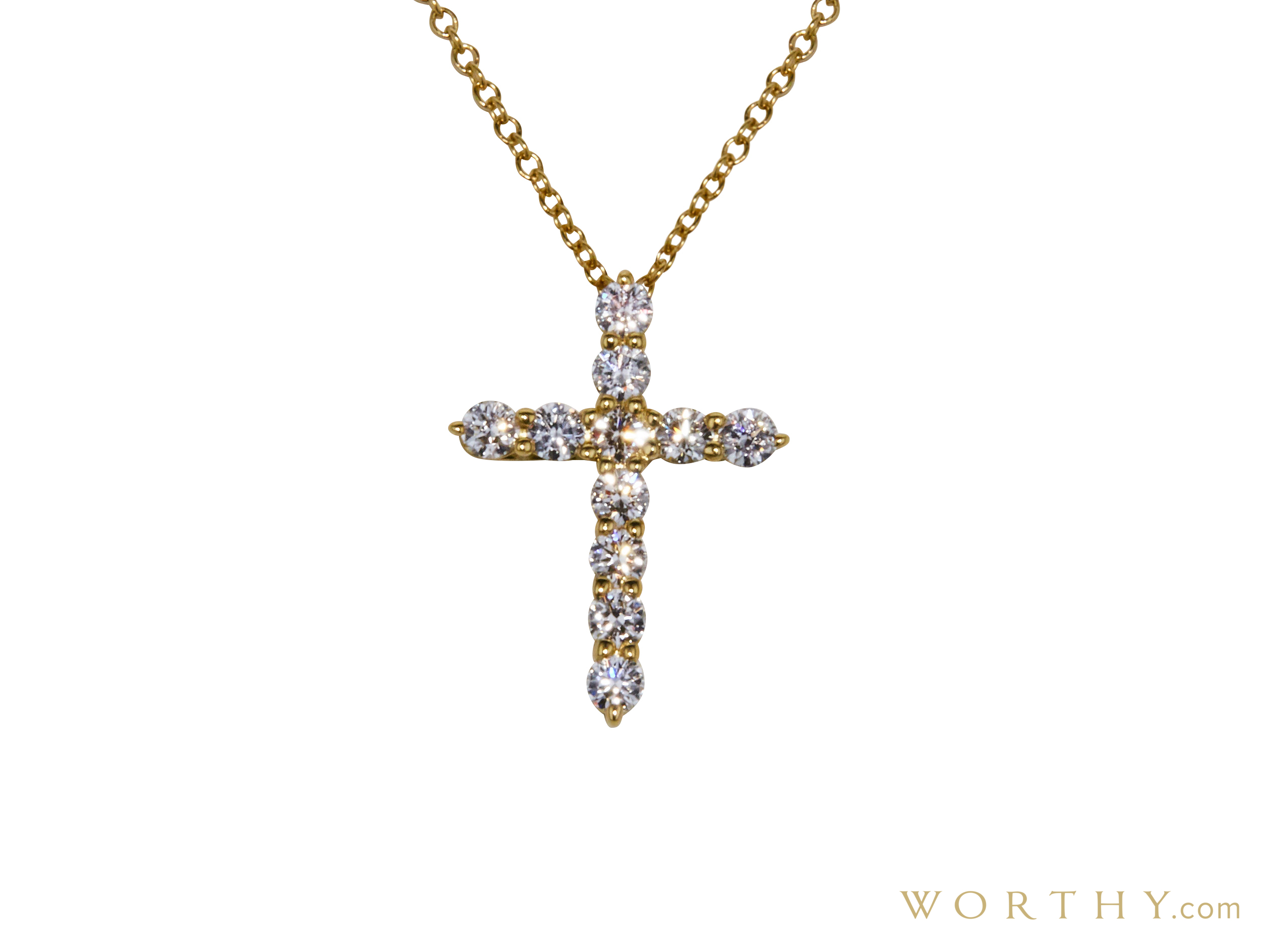 18k gold tiffany & co. pendant necklace consisting of11Round shape, natural Naturals, weighing 0.37 - 0.42 carats (cttw). The stones color and clarity ranging F-G and VS1-VS2 respectively, according to GIA grading scale.