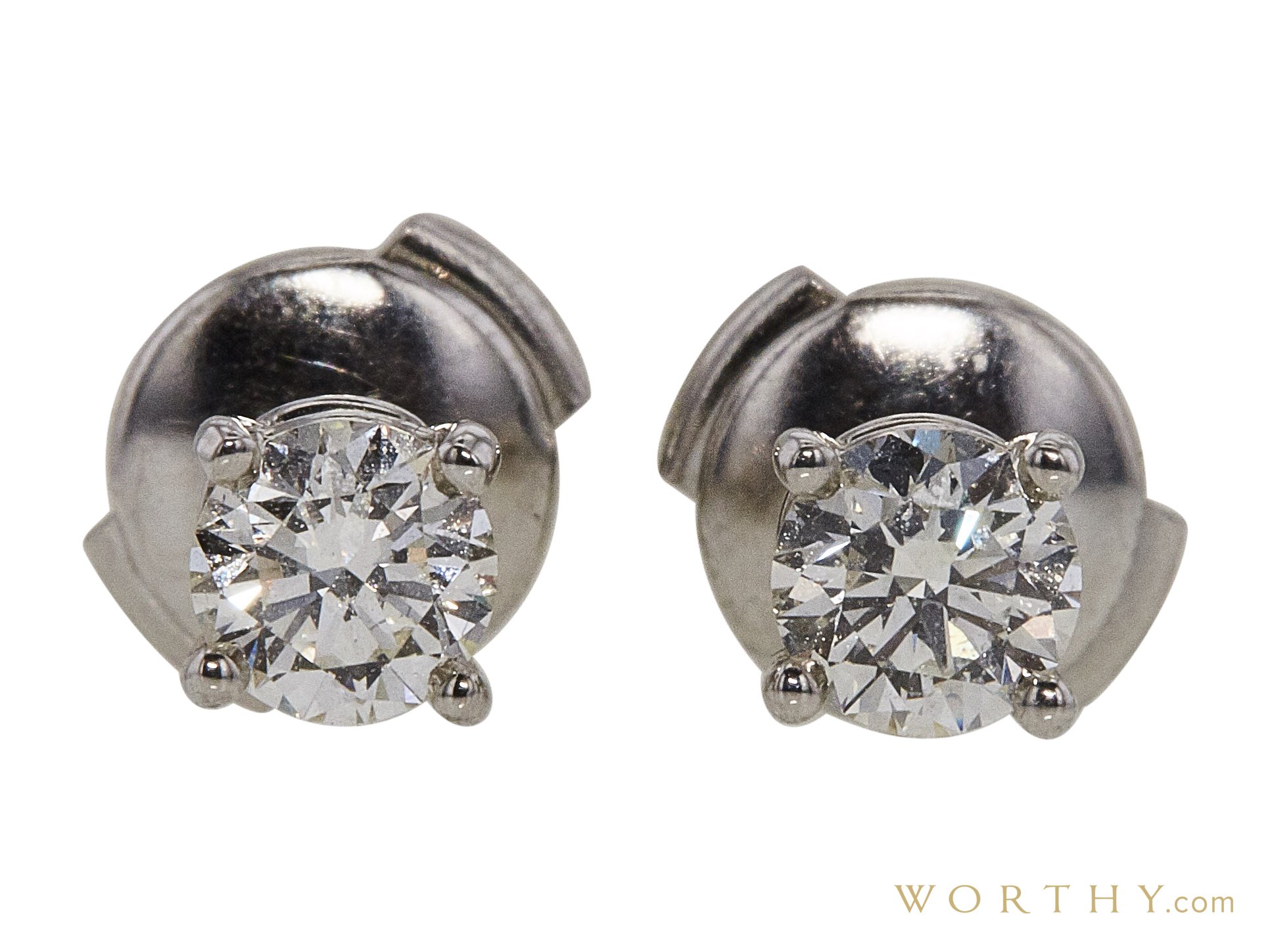 platinum tiffany & co. stud earrings consisting of2Round shape, natural Naturals, weighing 0.75 - 0.80 carats (cttw). The stones color and clarity ranging H-I and VS1-VS2 respectively, according to GIA grading scale. and carries a IGI grading report.