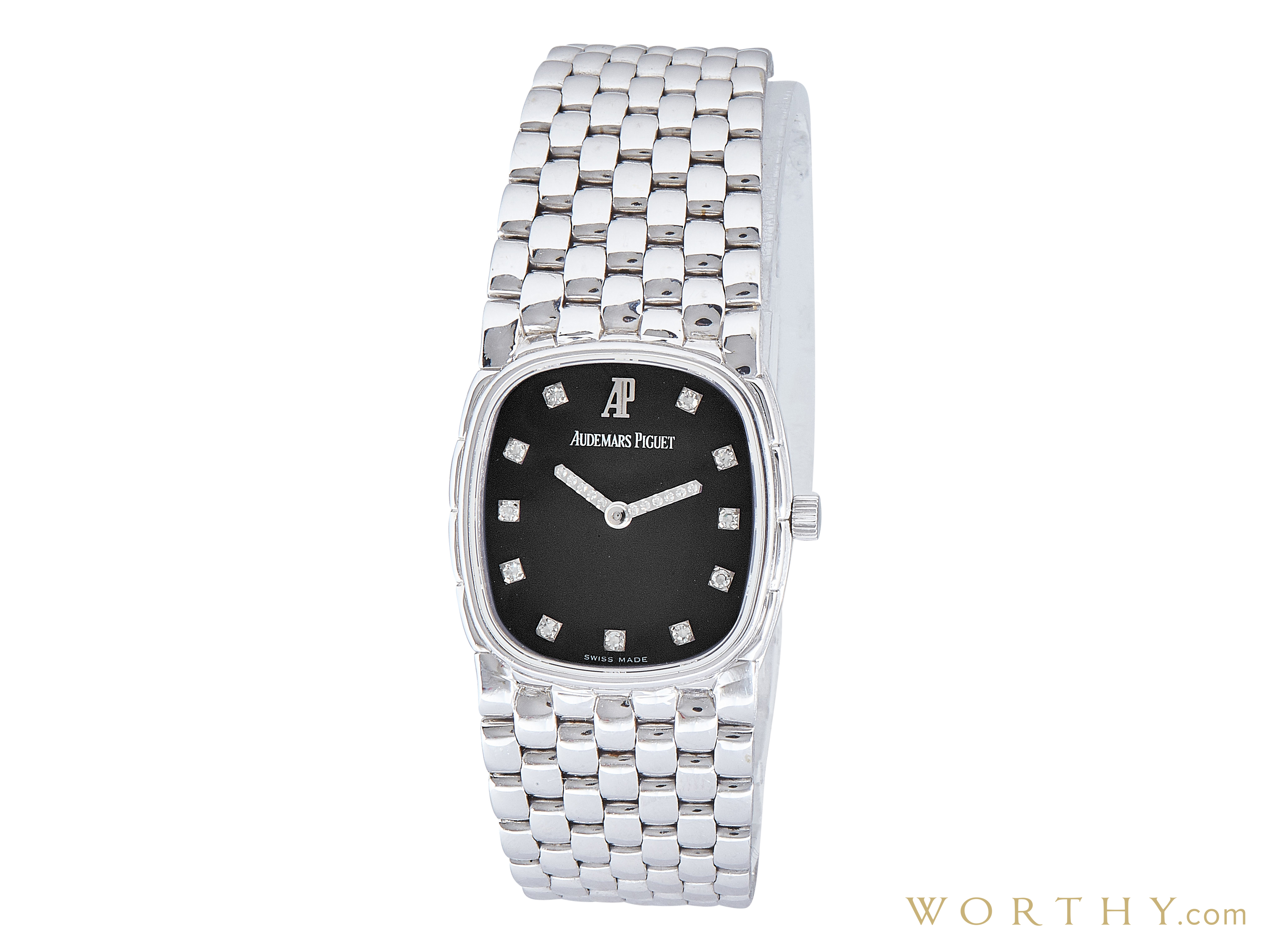 This Audemars Piguet Cobra was auctioned at Worthy. The woman's watch is 22mm in diameter with White Gold case, White Gold band. It features complication and hand-winding movement. It is in very good condition and attracted 121 buyers.