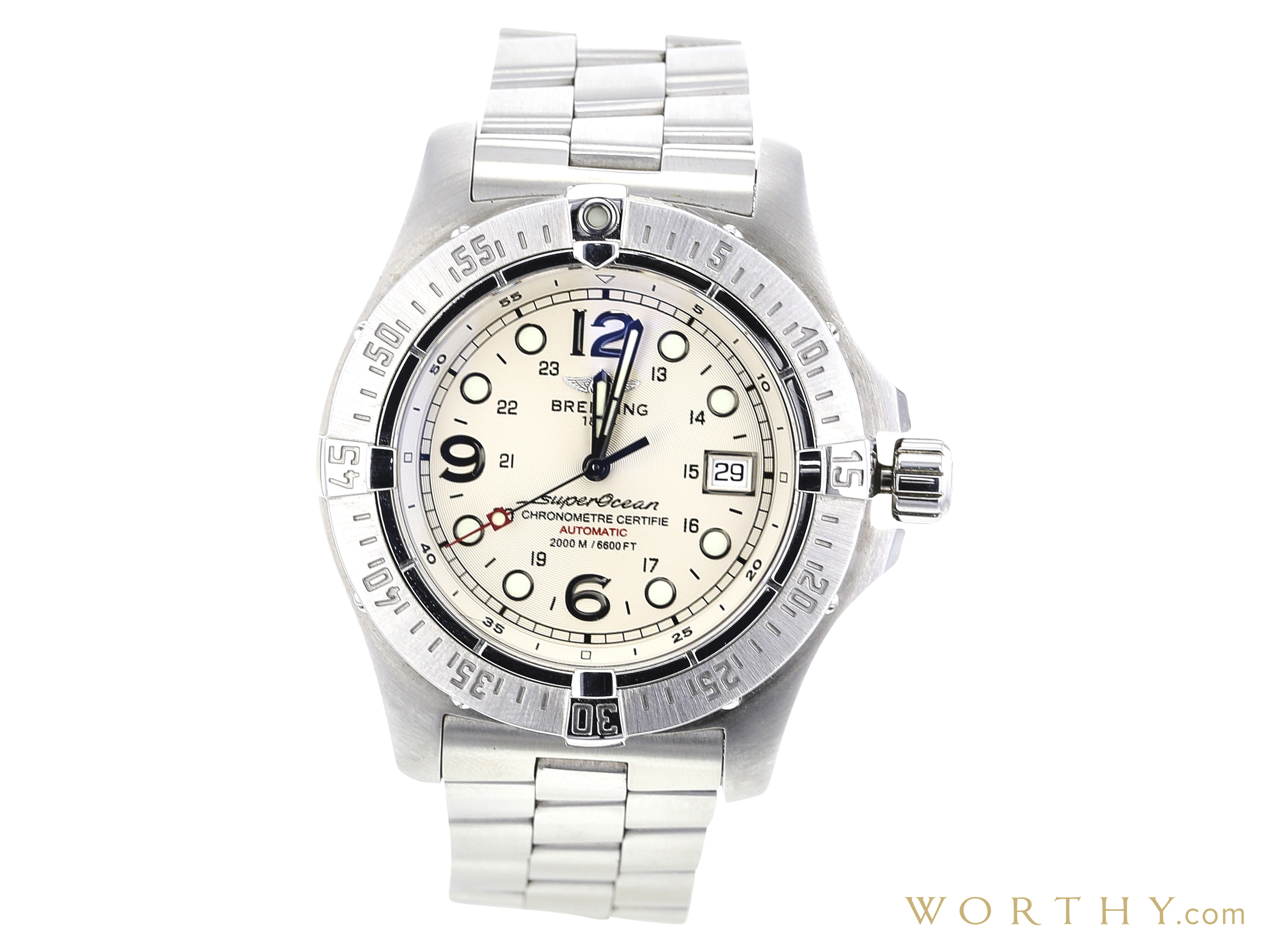 This Breitling A17390 was auctioned at Worthy. The man's watch is 44mm in diameter with Stainless Steel case, Stainless Steel band. It features complication and automatic movement. It is in good condition and attracted 294 buyers.