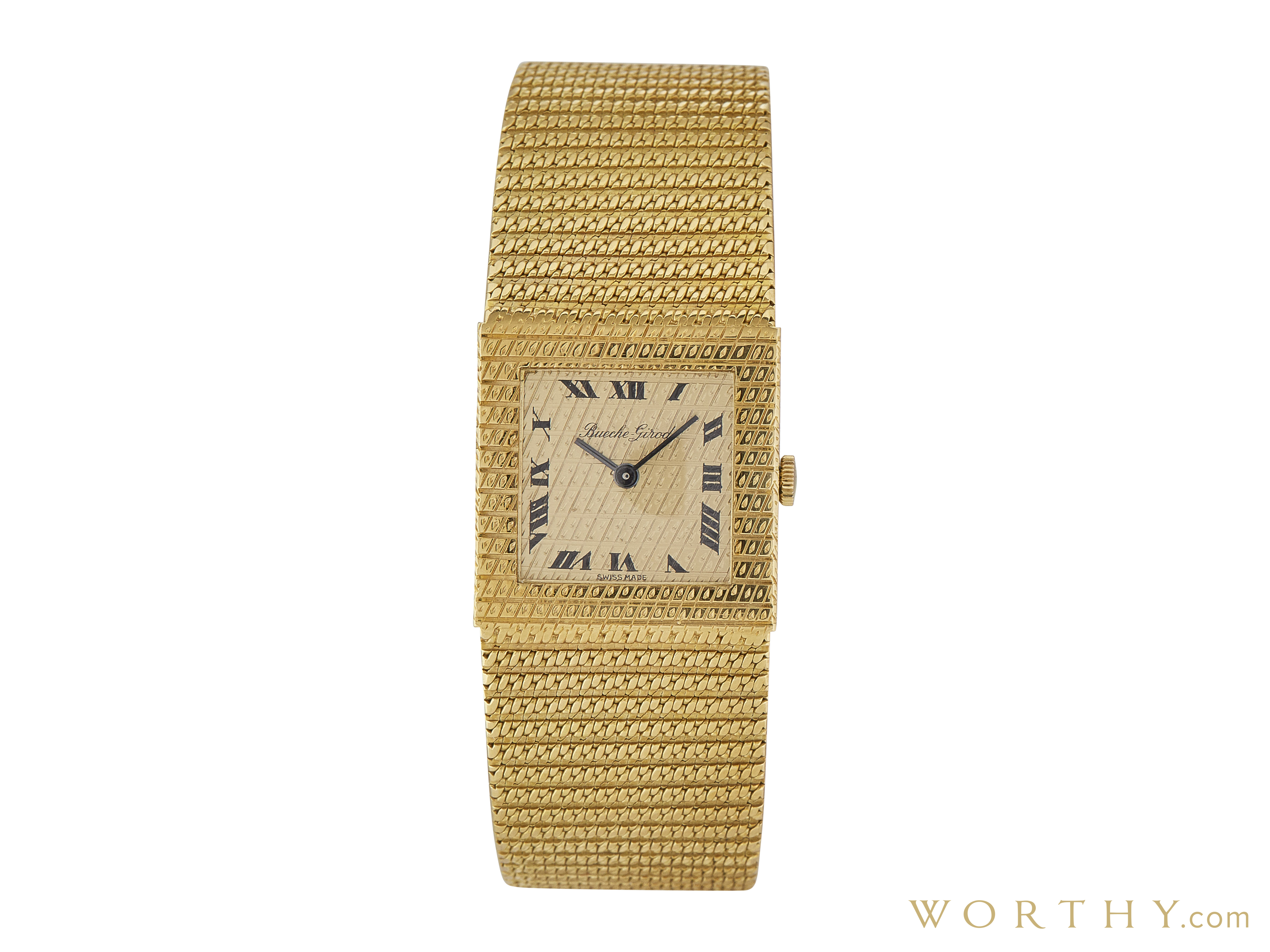 This Bueche Girod was auctioned at Worthy. The unisex's watch is 25mm in diameter with Yellow Gold case, Yellow Gold band. It features complication and hand-winding movement. It is in excellent condition and attracted 356 buyers.
