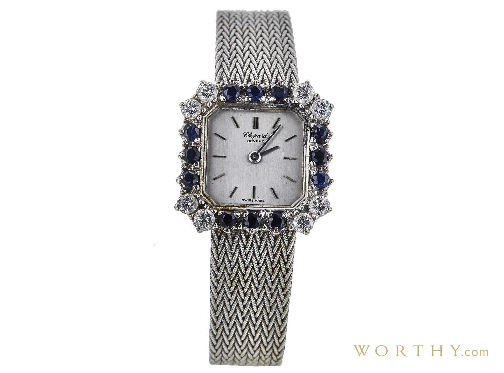 This Chopard 5087 1 was auctioned at Worthy. The woman's watch is 24mm in diameter with White Gold case, White Gold band. It features complication and quartz movement. It is in fair condition and attracted 309 buyers.