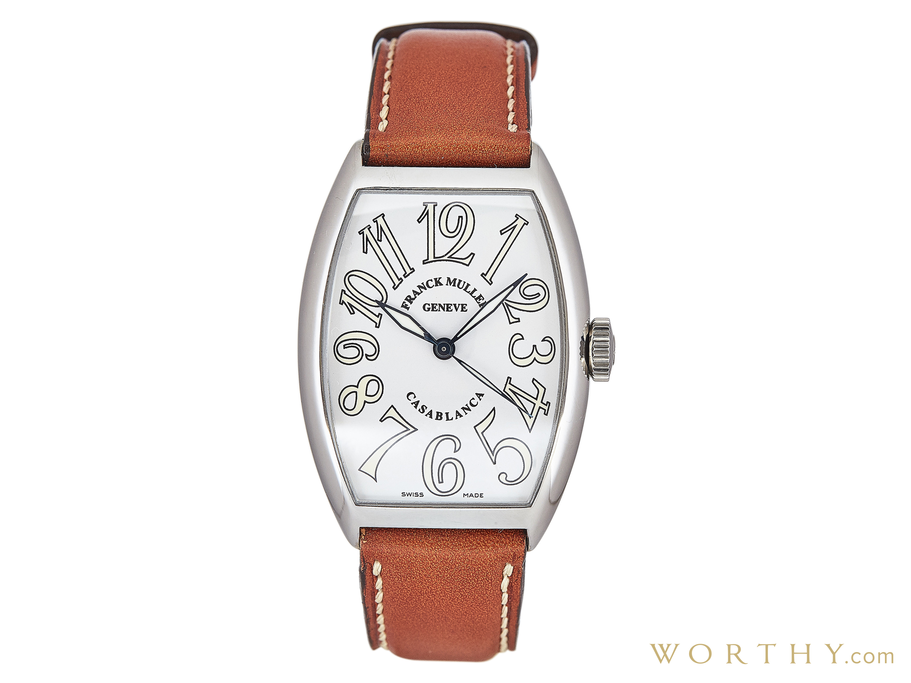 This Franck Muller Casablanca was auctioned at Worthy. The unisex's watch is 32mm in diameter with Stainless Steel case, Leather band. It features complication and automatic movement. It is in excellent condition and attracted 217 buyers.