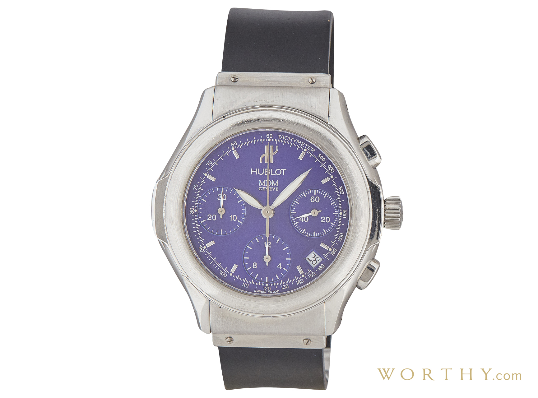 This Hublot Elegant was auctioned at Worthy. The unisex's watch is 40mm in diameter with Stainless Steel case, Rubber band. It features Date, Chronograph complication and automatic movement. It is in very good condition and attracted 367 buyers.