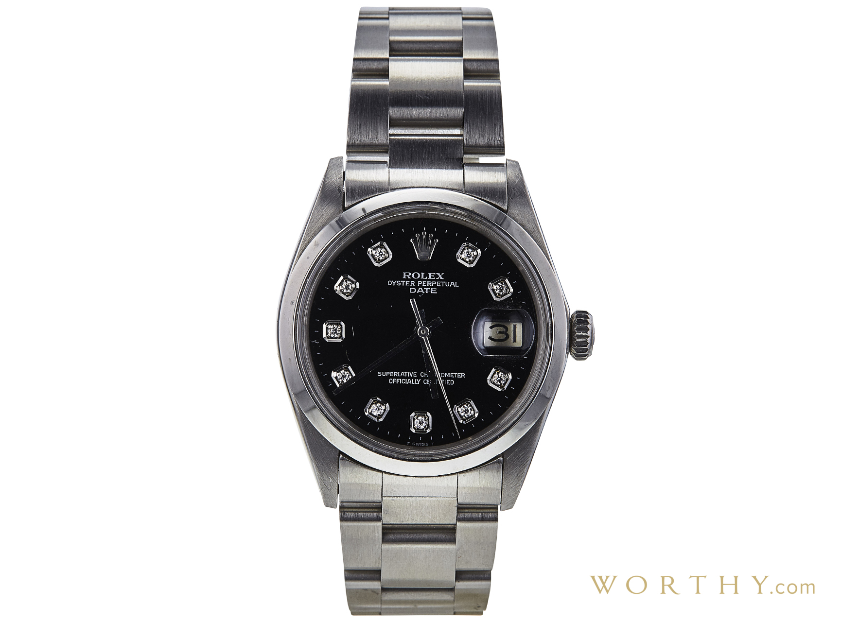 This Rolex 1500 was auctioned at Worthy. The woman's watch is 34mm in diameter with Stainless Steel case, Stainless Steel band. It features complication and automatic movement. It is in fair condition and attracted 303 buyers.