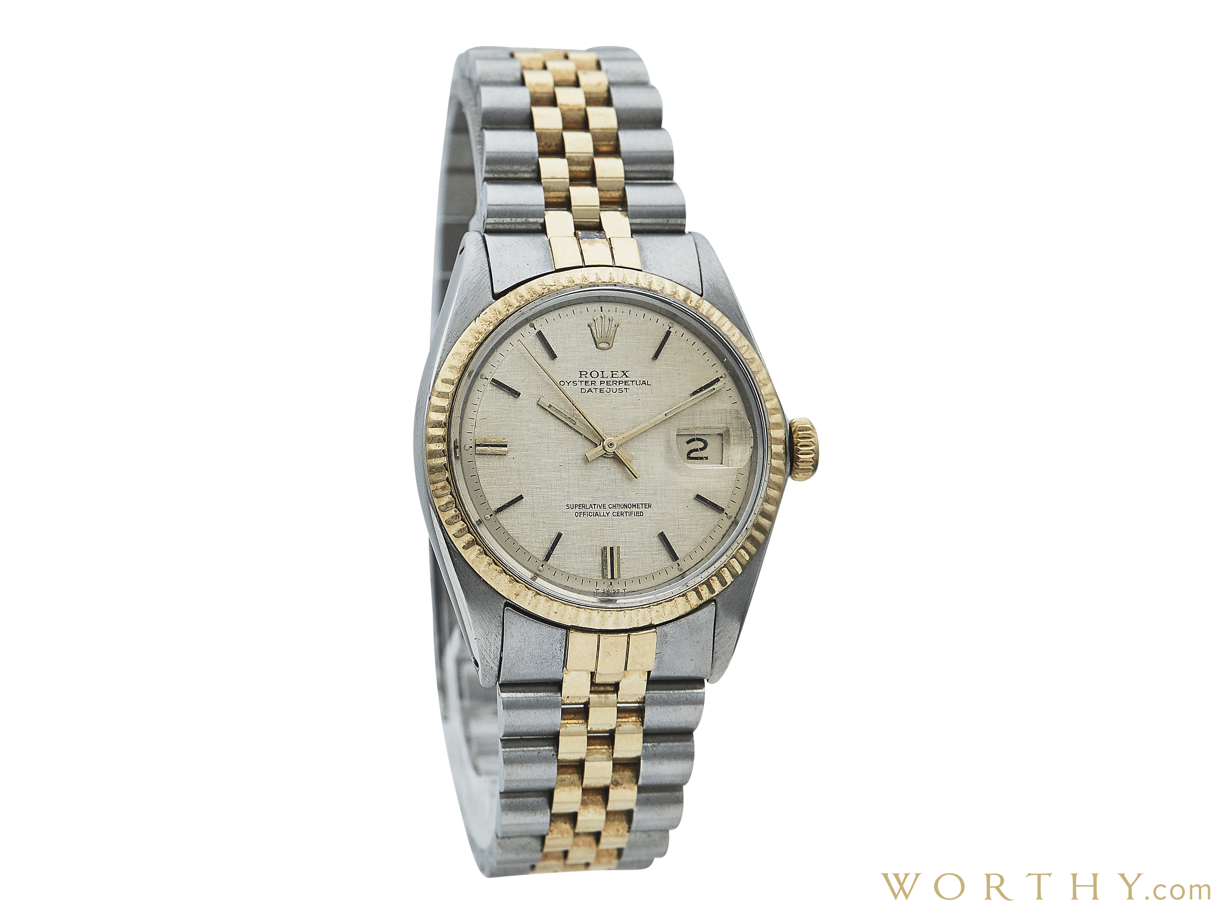 This Rolex Datejust was auctioned at Worthy. The 's watch is 36mm in diameter with Steel and Gold case, Steel and Gold band. It features Date complication and automatic movement. It is in good condition and attracted 384 buyers.