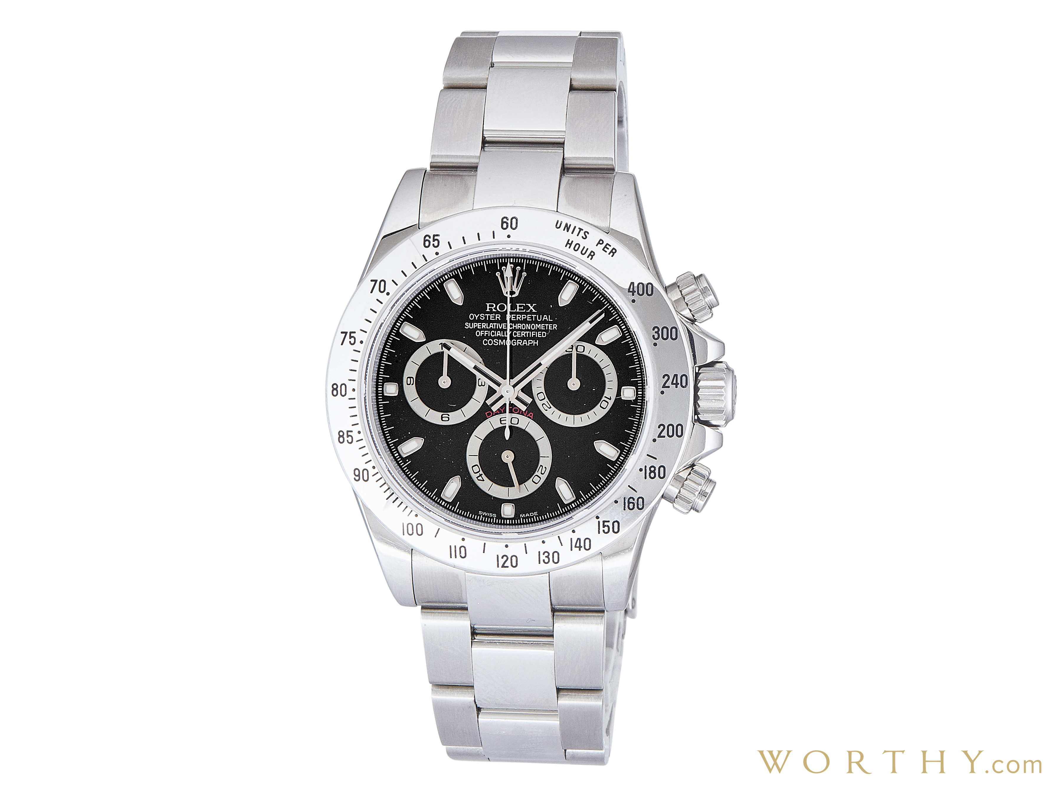 This Rolex Daytona was auctioned at Worthy. The unisex's watch is 40mm in diameter with Stainless Steel case, Stainless Steel band. It features Chronograph complication and automatic movement. It is in very good condition and attracted 365 buyers.