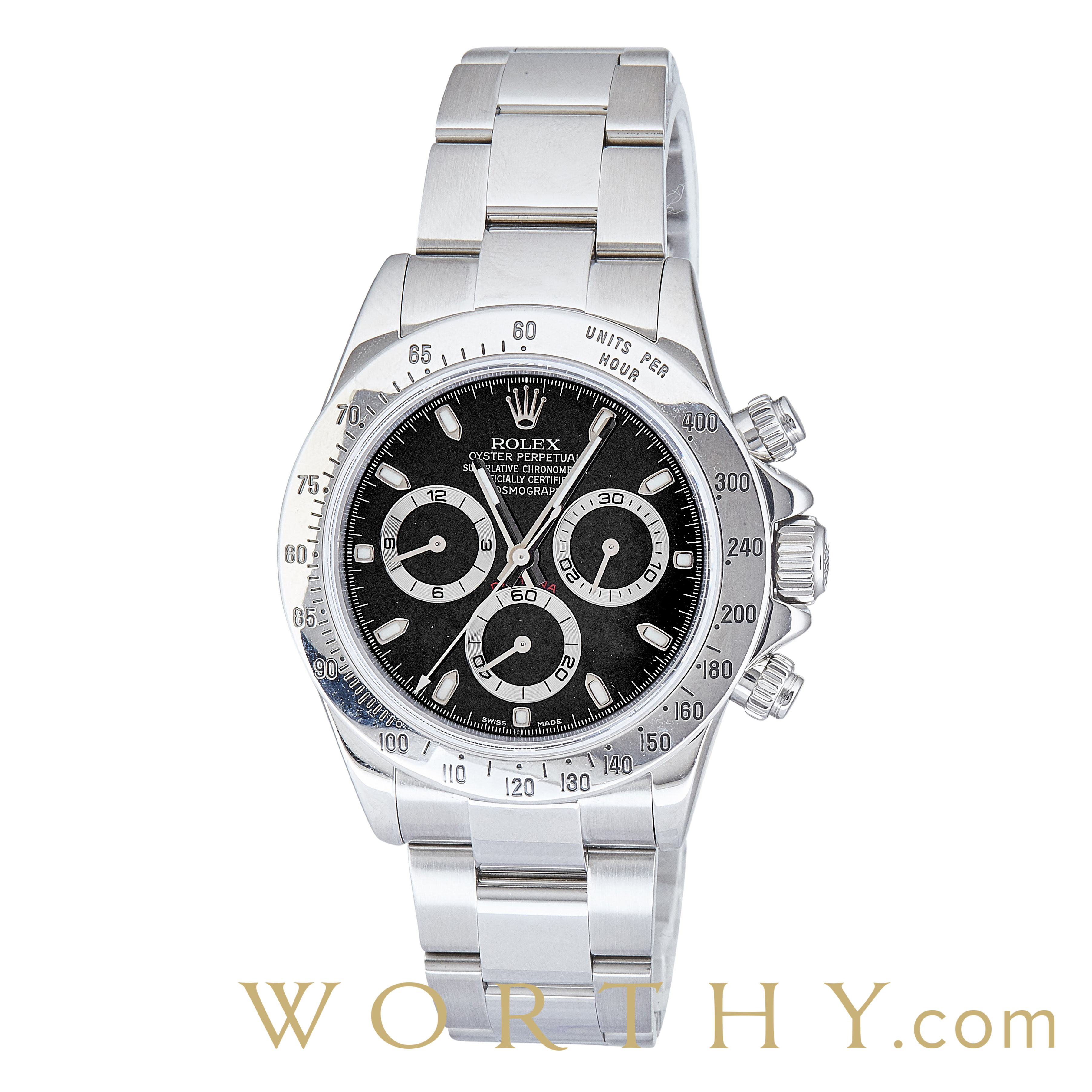 This Rolex Daytona was auctioned at Worthy. The 's watch is 40mm in diameter with Stainless Steel case, Stainless Steel band. It features Chronograph complication and automatic movement. It is in excellent condition and attracted 210 buyers.