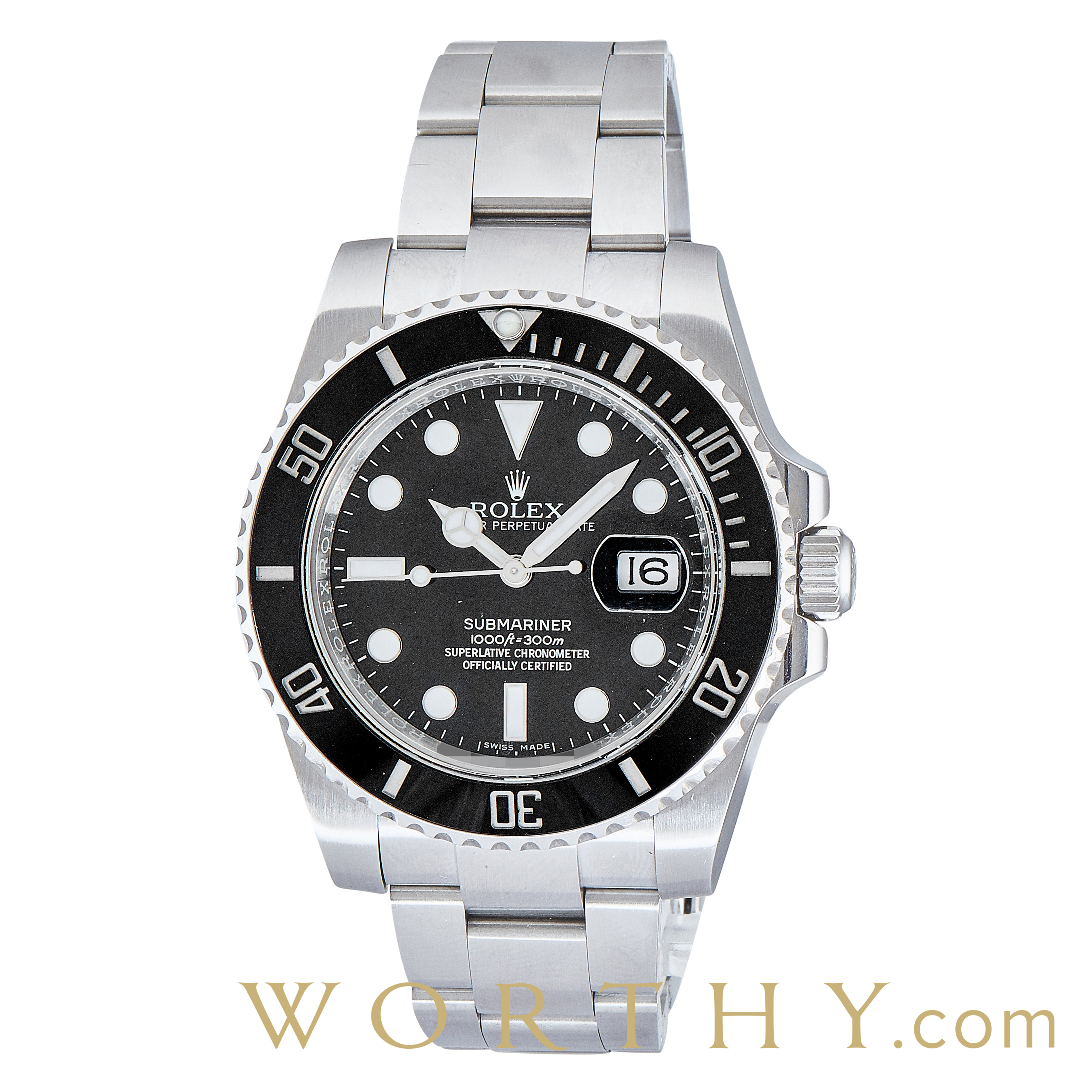 This Rolex Submariner was auctioned at Worthy. The 's watch is 40mm in diameter with Stainless Steel case, Stainless Steel band. It features Date complication and automatic movement. It is in very good condition and attracted 209 buyers.