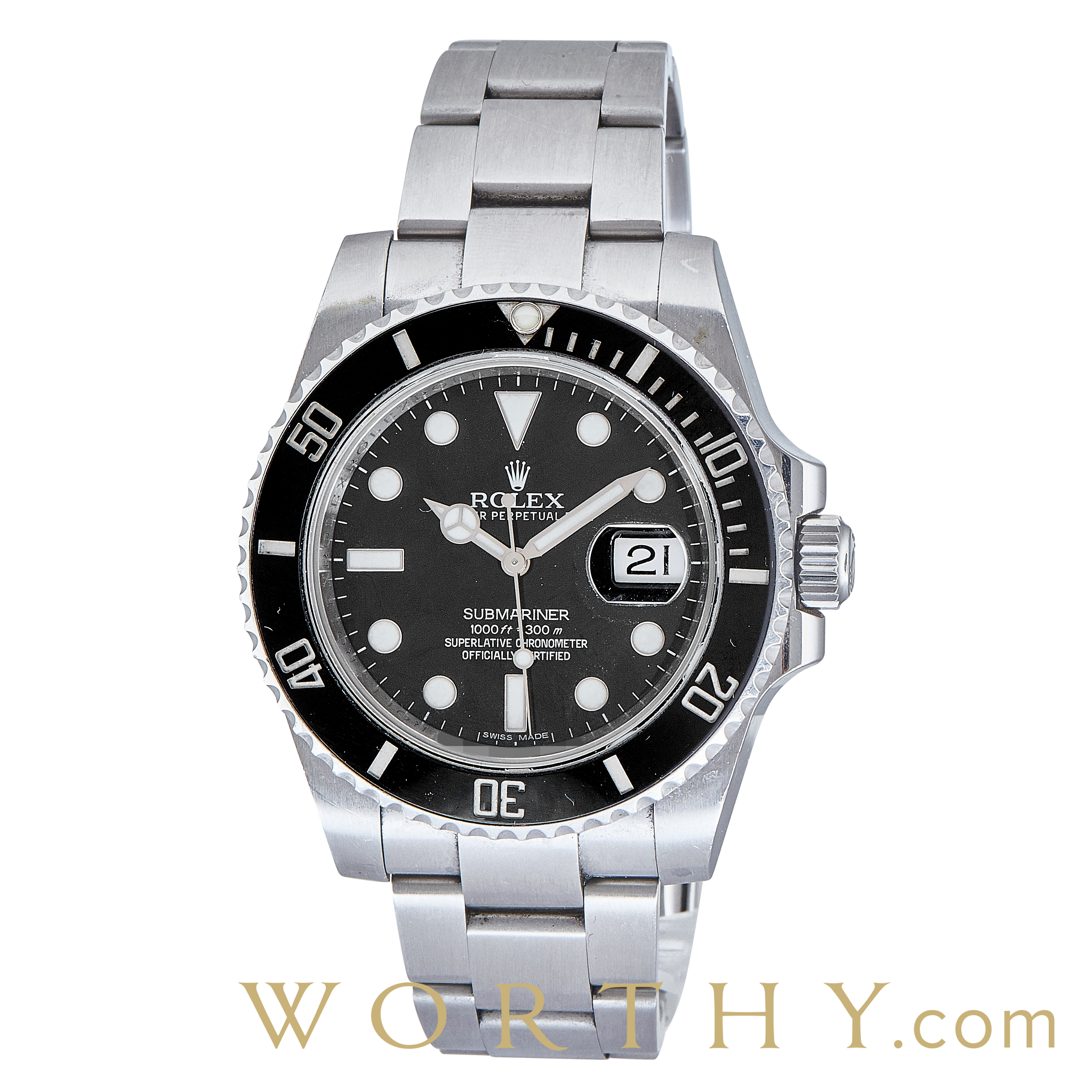 This Rolex Submariner was auctioned at Worthy. The 's watch is 40mm in diameter with Stainless Steel case, Stainless Steel band. It features Date complication and automatic movement. It is in very good condition and attracted 205 buyers.