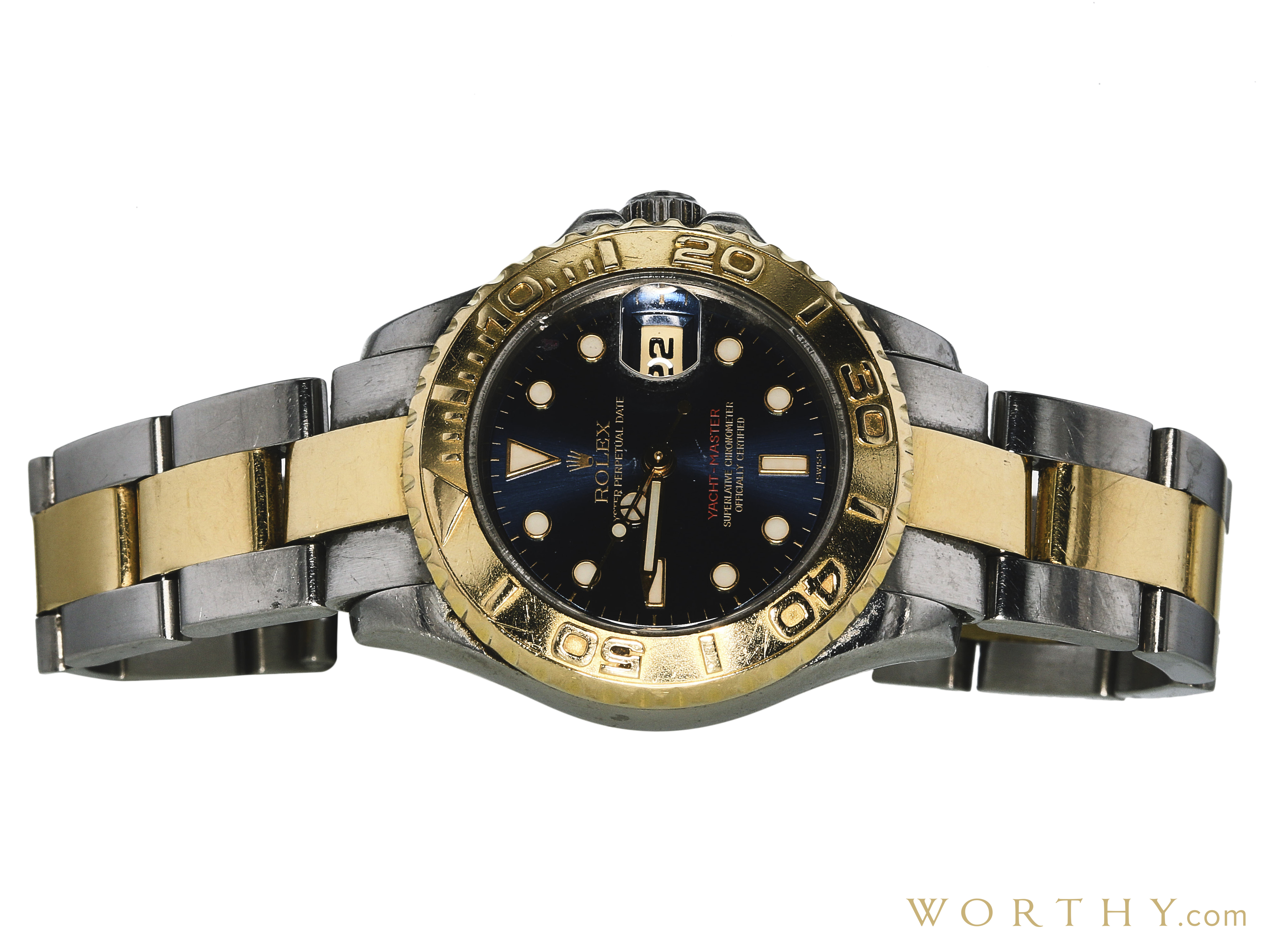 This Rolex 69623 was auctioned at Worthy. The woman's watch is 29mm in diameter with Steel and Gold case, Steel and Gold band. It features complication and automatic movement. It is in fair condition and attracted 354 buyers.