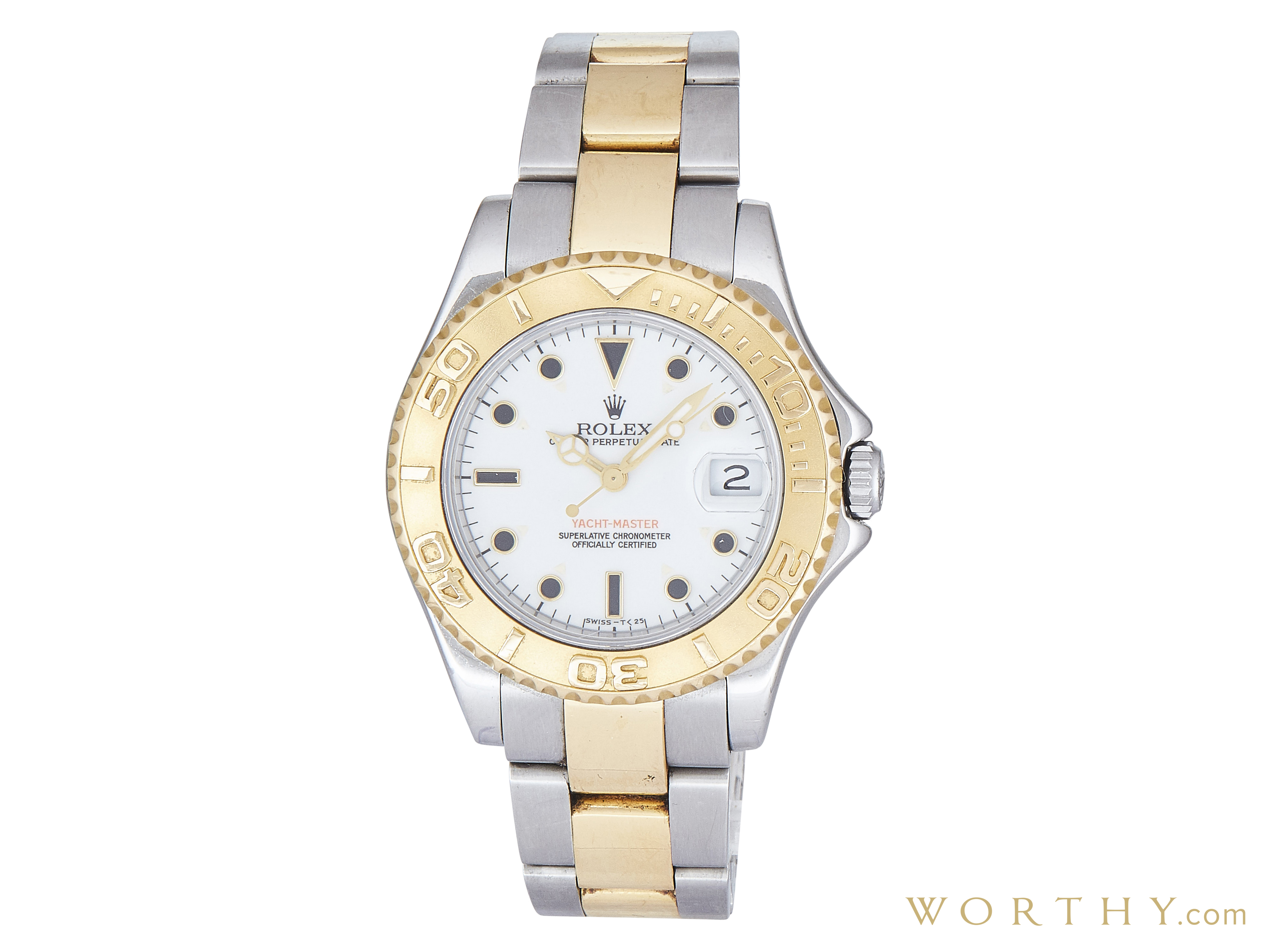 This Rolex Yacht-Master was auctioned at Worthy. The unisex's watch is 35mm in diameter with Steel and Gold case, Steel and Gold band. It features Date complication and automatic movement. It is in very good condition and attracted 563 buyers.